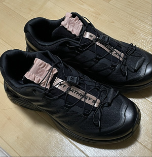 └― Salomon(サロモン)が誇るXTシリーズの機能を搭載している丈夫な軽量モデル『XT-PATHWAY 2(XT-パスウェイ2)』がベース。ブラックで統一されたアッパーにフリル仕様のピンクロゴが映える小粋なデザイン。