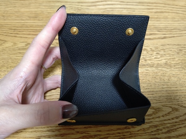 ミニ財布でコイン入れがボックス型のものは少なく、シンプルなデザインに程よい存在感のスタッズが気に入り購入しました