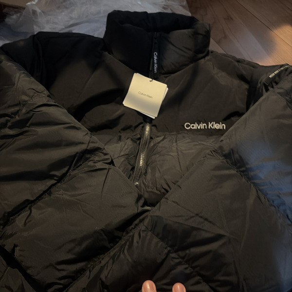 最初にご紹介するのは、Calvin Klein(カルバンクライン)♡顔まわりだけ異素材になっており、同色ながらも切替えで奥行きのある印象に。ちょうどいいボリューム感なので、インナーを選ばず1着あれば困ったときの救世主となってくれそうです。