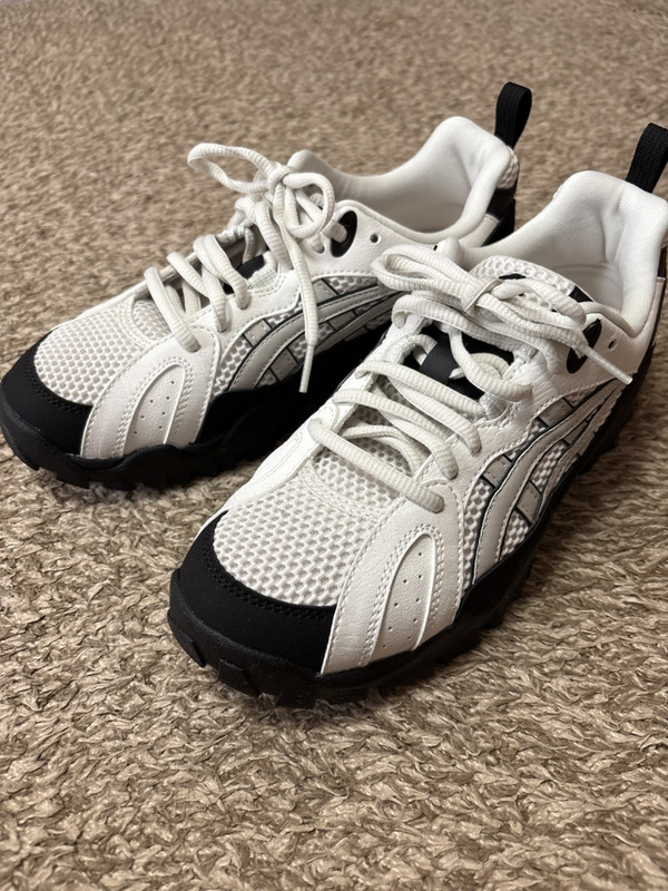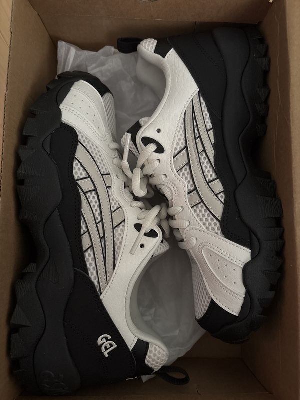 メッシュにレザーを合わせた頑丈なアッパーと、複数の素材をミックスした肉厚なソールにより、トレッキングシューズのような佇まいが魅力。爽やかなホワイトとブラックの配色にコントラストを効かせたアシックスラインが落ち着いた雰囲気も演出してくれます。