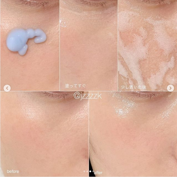 重ね塗りをしてしまうと、酸素バブルが上手く上がってこないので、たくさん塗るよりも適量を出して顔全体に満遍なく伸ばすと綺麗に酸素バブルが上がってきます。最初は勢いよくバブルが弾け、徐々に弾けるのがおさまるので、軽く叩いて馴染ませるとびっくりするぐらいハリと透明感が出ます!!!