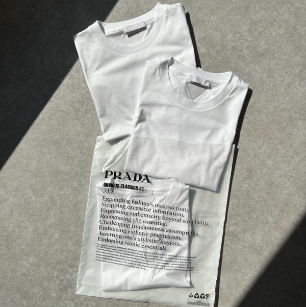 さり気なく大人のクラス感を漂わせるならPRADA(プラダ)の「パックT」が断然おすすめ。ホワイトは少し透け感があるためインナーとして活用させたい人や、休日にルームウェア感覚で取り入れたい人にもおすすめです◎