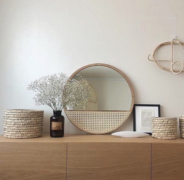 壁掛けミラーを絵画みたいに飾ると、部屋が明るく・広く見える効果もあるんだって!