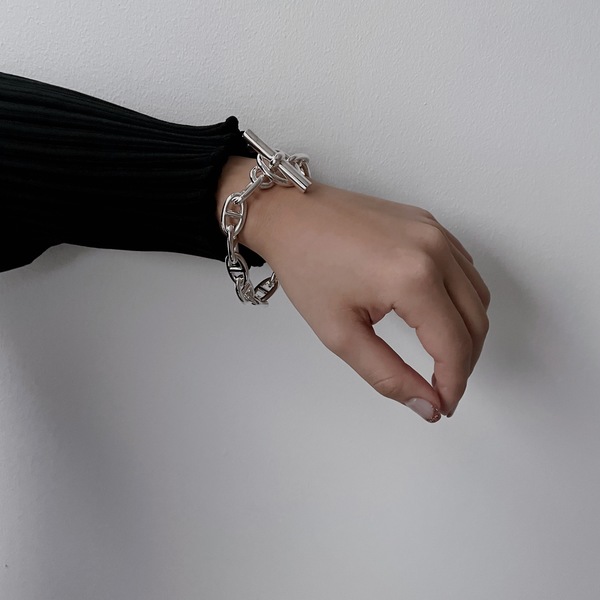 このシルバーブレスレットは、HERMES(エルメス)の『Chaine d'Ancre(シェーヌダンクル)』。今芸能人やモデルさんをはじめ、お洒落さんがこぞって身に付けているチェーンブレスレットなんです。