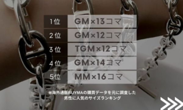 ※海外通販BUYMAの購買データをもとに調査した、男性に人気の「シェーヌダンクル・ブレスレット」サイズランキングです。