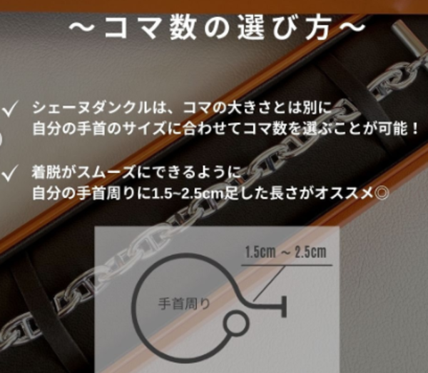 ✓ シェーヌダンクルは、コマの大きさとは別に自分の手首のサイズに合わせてコマ数を選ぶことが可能!