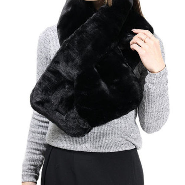∟UGG(アグ)のボリューミーなフェイクファーマフラーは、ブランケットのように柔らかな肌触りにうっとり。レザー製のロゴパッチがあしらわれ、秋冬スタイルにフェミニンな印象を添えてくれます。