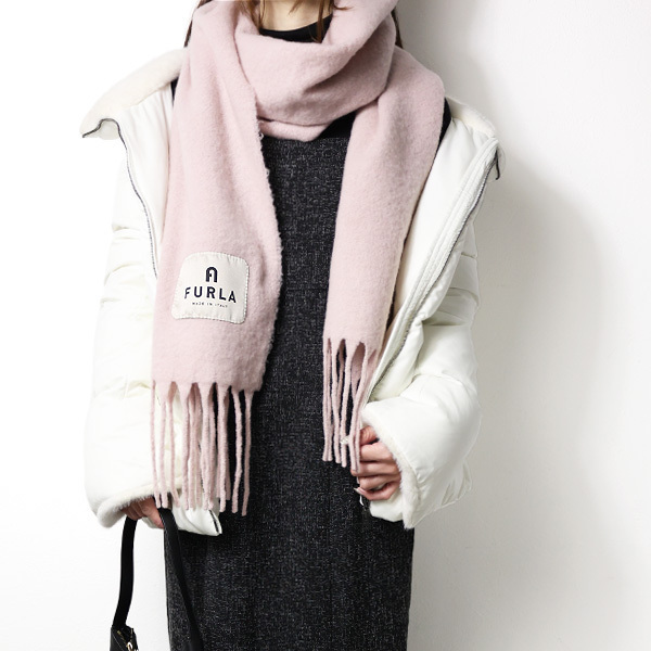 ∟「FURLA(フルラ)」の気品溢れるマフラーは淡いフェミニンカラーも多数展開中。ドレッシーな着こなしにも合わせやすい優れものです。