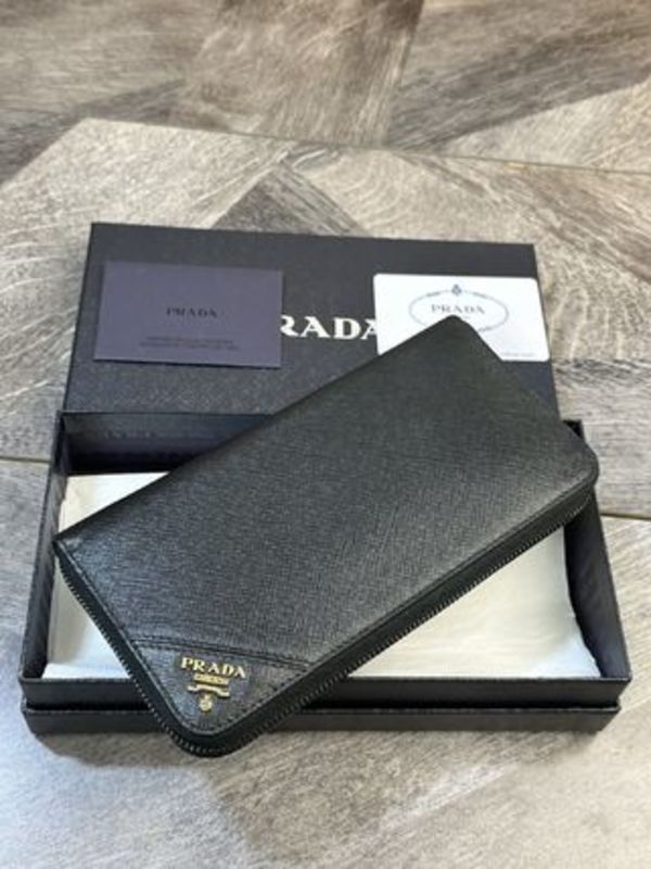 ∟耐久性最強とも呼ばれるPRADA(プラダ)のお財布。メンズ財布ももれなく大人気です。知的な印象を与えるサフィアーノ素材の長財布は、レザーアイテムのクオリティの高さに定評があるプラダならではの上質さと、しっかりした作りが魅力です!