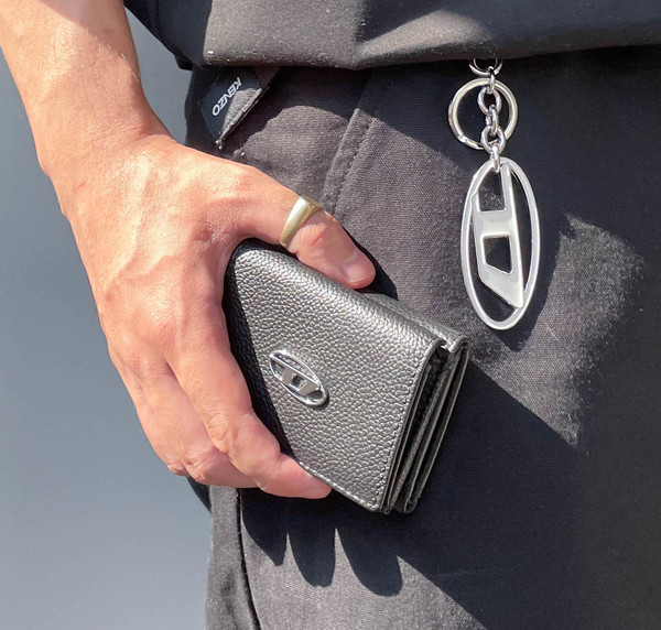 ∟クールでかっこいいブランドとして認知され、人気急上昇なDIESEL(ディーゼル)のメンズ財布。二つ折り財布は、洗練されたロゴがアクセントになっているのがポイント!これなら大人の男性でも抵抗なく携行できる。