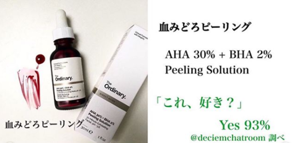 言わずと知れた血みどろピーリング。 自宅ケアではあり得ない高濃度。 肌の外側の表皮(AHA)と毛穴詰まり(BHA) 両方にアプローチ。 肌に刺激が強すぎて、使い続けると逆に剥がれすぎによりキメを失う、との声もあり。 賛否両論があり、注意が必要。