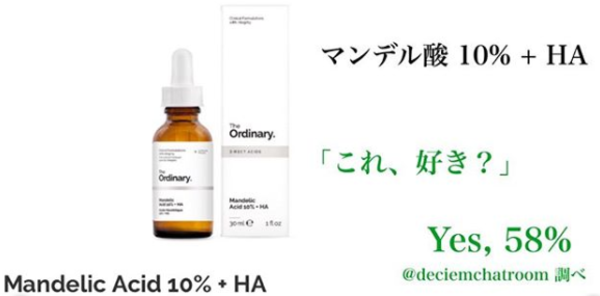 グリーンの文字の「✅これ、好き?」という結果のパーセントは、「デシエムチャットルーム @deciemchatroom 」という、世界最大のオーディナリー商品のファンサイトがとったアンケートの集計です。まあ、アジア人の肌と他の人種のお肌はまた違うと思うので、これも参考程度に見てみてください!