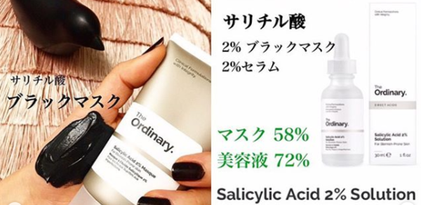 サリチル酸は2種類あります。こちらは皮膚の表面でなく、毛穴のつまりを除去する成分で、ニキビや油性肌に効果。血みどろに含まれるBHA2%はこれのこと。 血みどろは肌の表面に強すぎるならコレを使って毛穴ケアする手もあります。 ブラックマスクは割と新商品なので、アンケートの結果数が少ないのかと思います。セラムは午前も使え、洗い流さないタイプ。