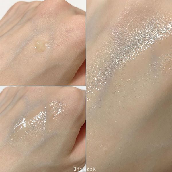 ワセリンのような重たいテクスチャーで、少し体温で溶かしてから肌に馴染ませるようにすると伸びがよくなります。肌に馴染むと肌がとてもツヤツヤ、ピカピカする仕上がりになります。