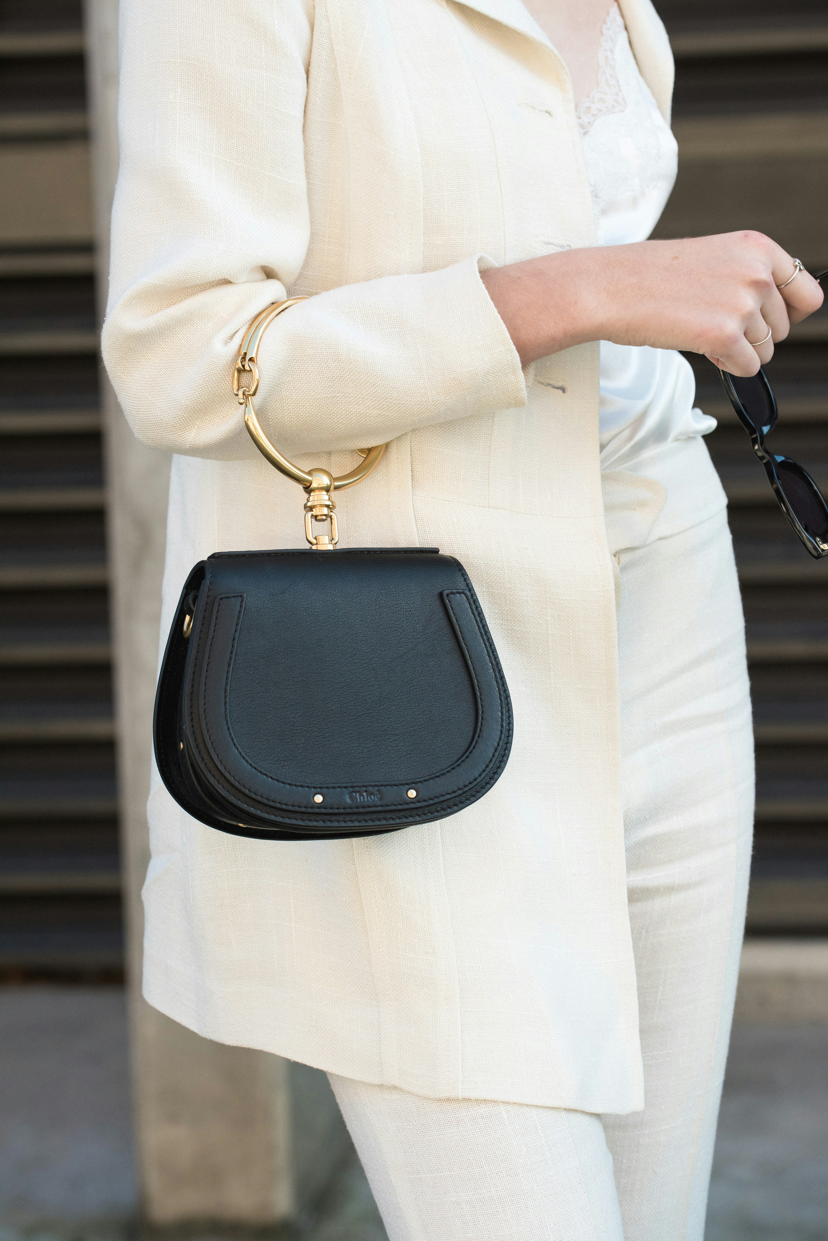 Chloéのシグネチャーともいえる、オーバーサイズのリングループがあしらわれたデザインが特徴の「ROY(ロイ)」。マスキュリンとフェミニンの要素の絶妙なミックスはクロエの得意技♡きれいめなムードを、リュクスなスタッズや装飾が和らげるデザインです。