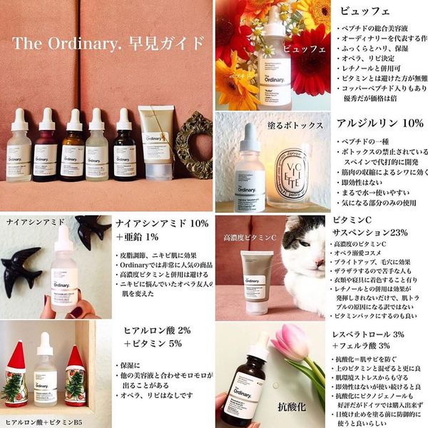 以前、The Ordinary(ジオーディナリー)の製品たちの特徴を一気にまとめた『早見表』をつくったのが、もう1年以上もまえのこと😳📆