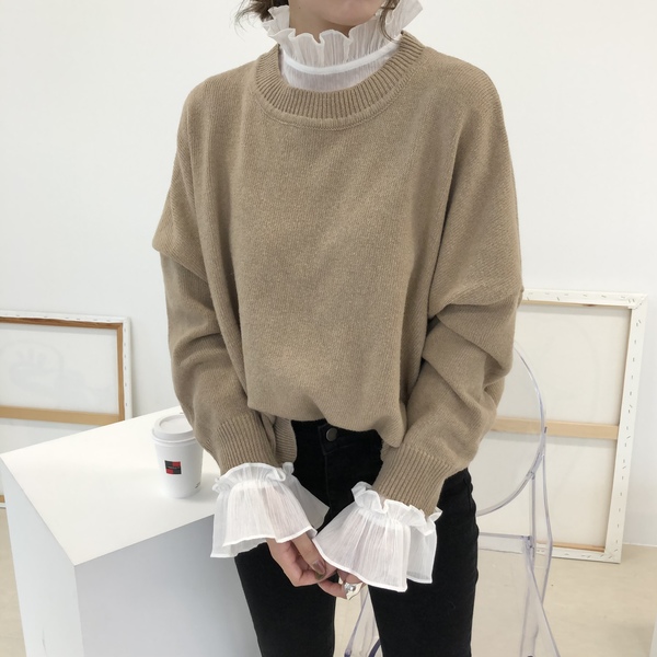 クルーネックニット + つけ襟
