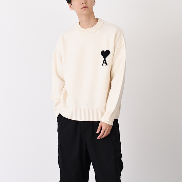 △20代~40代まで幅広い層から今大注目されているのが「AMI PARIS(アミ パリス)」。赤のハートをモチーフにしたブランドロゴは、シンプルなニットに遊び心を加えてくれます。ウールを使った上質な素材感で、気品のある雰囲気を忘れません。
