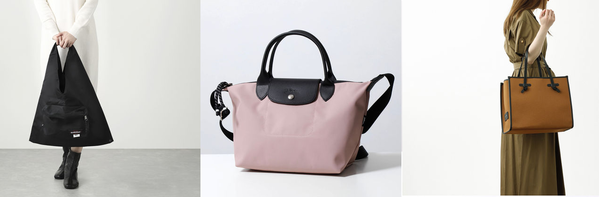 上記画像は左から順に人気1位「MM6」、2位「ロンシャン」、3位「ジャンニキアリーニ」の商品となります。