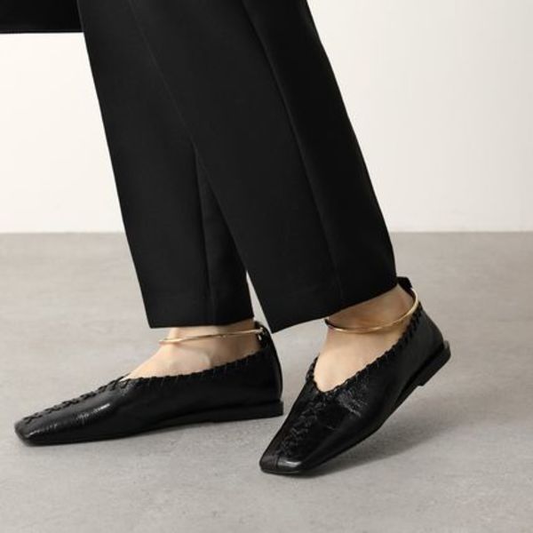 取り外し可能なメタルアンクレットが付いた、レザーのレースアップバレエシューズです。足首にワンポイントあることでおしゃれ上級者に!デニムスタイルにも、エレガントなスカートスタイルにも合います!