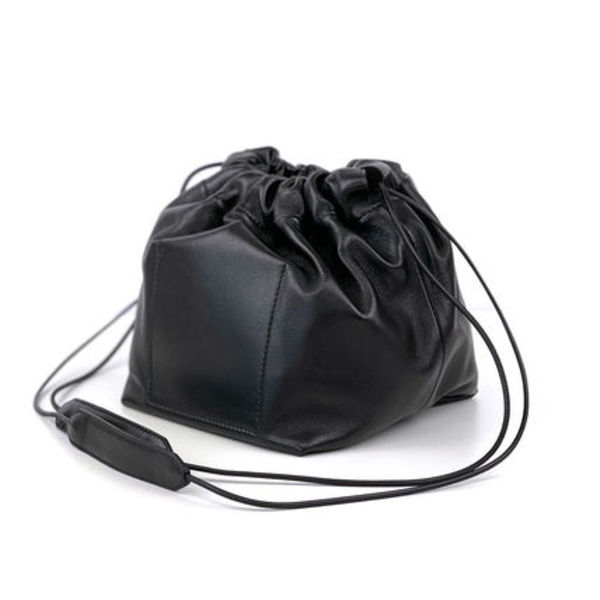 クロスボディスタイルのバケットバッグ。ラムレザーを使用したコンパクトなデザインがおしゃれな一品です。引きひもで開閉できる巾着タイプ。