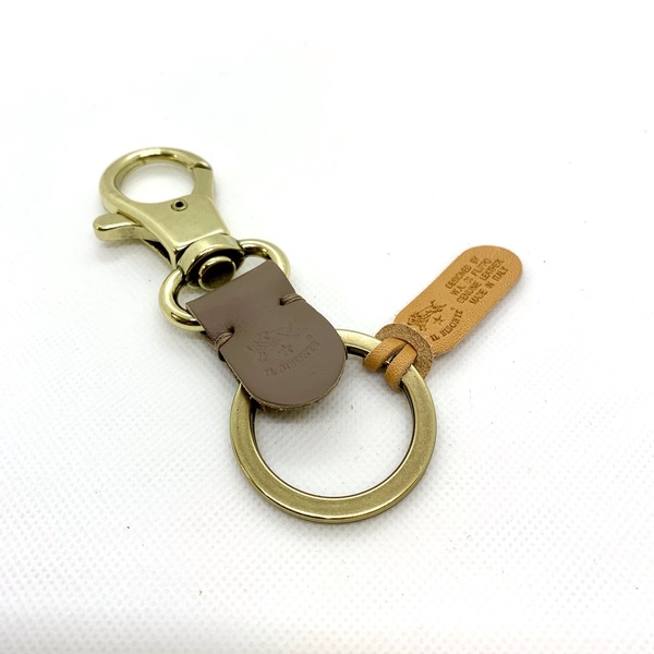 イルビゾンテのバッファローマークをあしらったレザーモチーフがアクセントとなったキーリング。大きめのナスカンはバックやベルトループに取り付けやすく、レザーとアンティークゴールドのパーツがマッチしたクラシカルなアイテムです。
