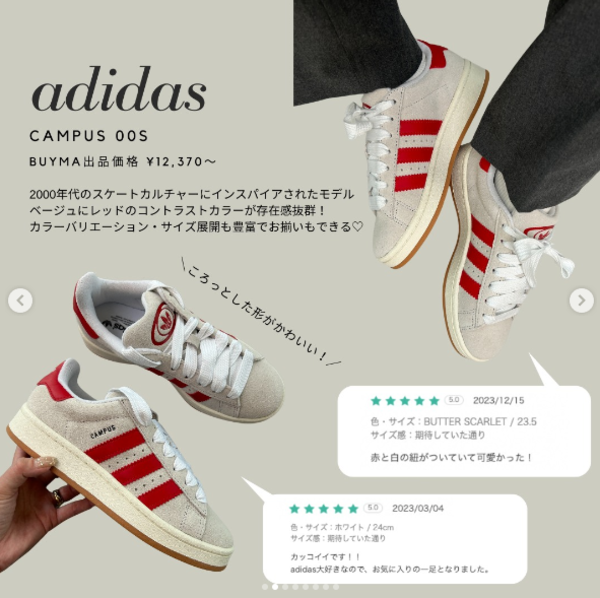 お洒落女子の間で人気となっているのが、有名スポーツブランドadidas(アディダス)のスニーカー!シンプルなデザインが多く、コーデしやすいのがポイント。Y2Kトレンドから、レトロなサンバが大ブーム中。
