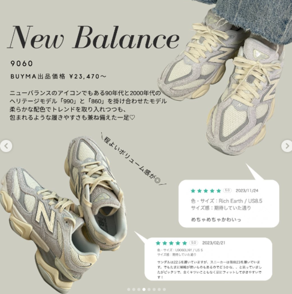 2022年に登場した最新モデル「9060」が早くも人気に!他のモデルにはないダッド感のある個性的なデザインが特徴で存在感を放つ一足です。モダンでチャレンジングな逸品だと評判です。