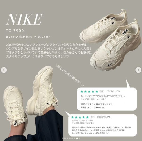 ナイキ「TC7900」のサイズ感レビューはこちら↓