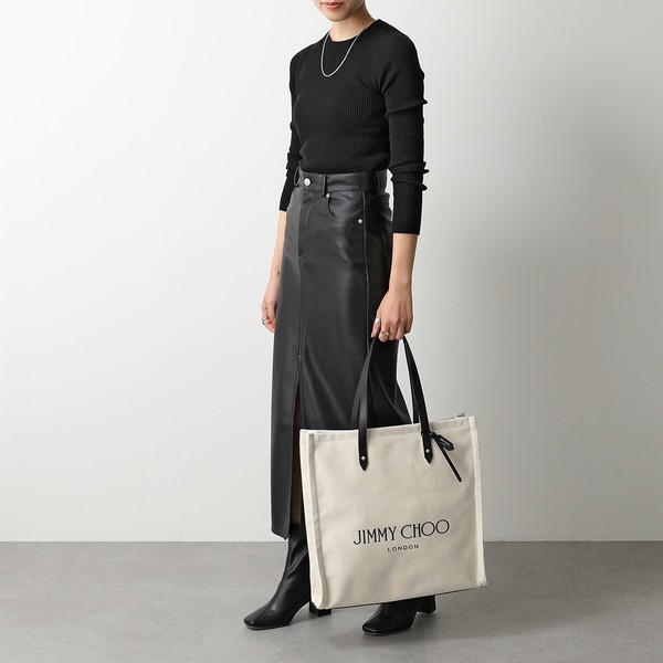 まずご紹介したいのは、細身のレザーハンドルとロゴデザインがオシャレな『ジミーチュウ』のキャンバストート!!