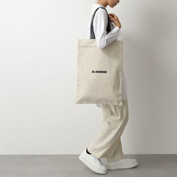 コットンのサラリとした素材感と、リネンのナチュラルな雰囲気が絶妙なオシャレ感を醸す『ジルサンダー』のトートバッグ。素材感に加えて特大サイズのシルエットも、モード感漂うスタイリッシュな印象にしてくれます。