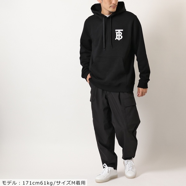 まず1番にオススメしたいのは、ロゴフーディ。黒×白のコントラストがおしゃれでクール。遠くから見ても目立ちそう。でも大き過ぎずないロゴは主張度は低め。「さりげなく」お洒落を取り入れられるのが人気のポイント!
