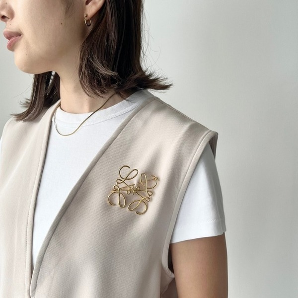上品な雰囲気漂うロエベのアナグラムブローチ。シンプルでありながらも存在感抜群なのでテイストを選ばず気軽に身につけられ、ラグジュアリーな装いを演出してくれます。