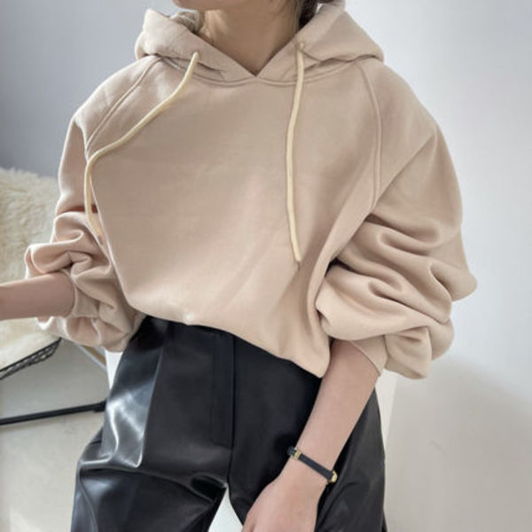 続いては、とにかくボリューミーでメンズのパーカーを着ているような可愛さがモテ間違いなしの、こちら♡袖のモコッとしたデザインがすっごくキュートですよね。合わせるボトムスはその代わり「タイト」をチョイスすることをお忘れなく!