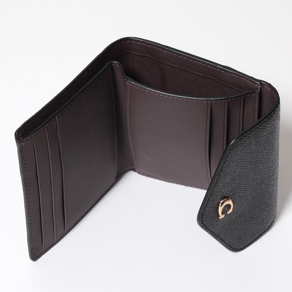 フロントにあしらわれたCロゴパーツが存在感を放つ二つ折り財布。傷のつきにくい上質なレザーを使用したコーチらしい逸品です。コンパクトながら、お札やカード、コインなど必要な収納スペースを備えた使いやすいモデル。