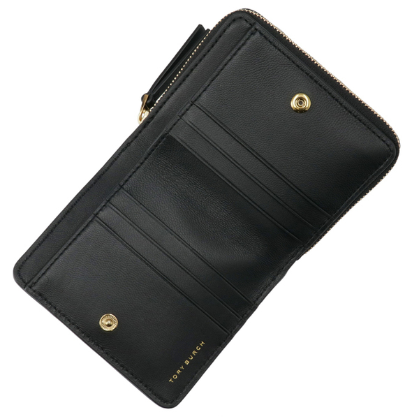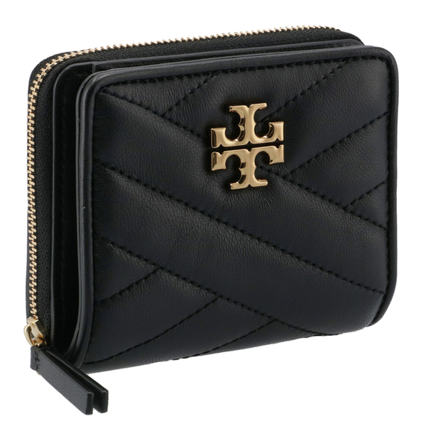 シックな印象を与えるダブルTロゴが目を引く二つ折り財布。柔らかなキルティングレザーが使用され、手に馴染みやすい設計に。ミニバッグにもぴったりのサイズ感でありながら、カードやお札もしっかりと収納できます。