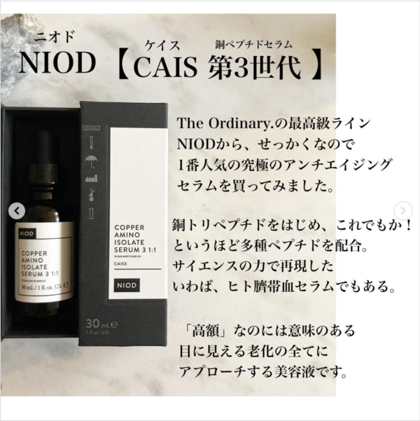 The Ordinary.の姉妹ブランドであり最高級ラインのNIOD (ニオド) の人気セラム。人気っつってもオーディナリーとはお値段が「🔝🤪💸」なので勇気出なかったのだけど、その売り切れ続出な人気に、私もおりゃ〜!と11月のセールで買って、みっちり使ってみました😻🧪