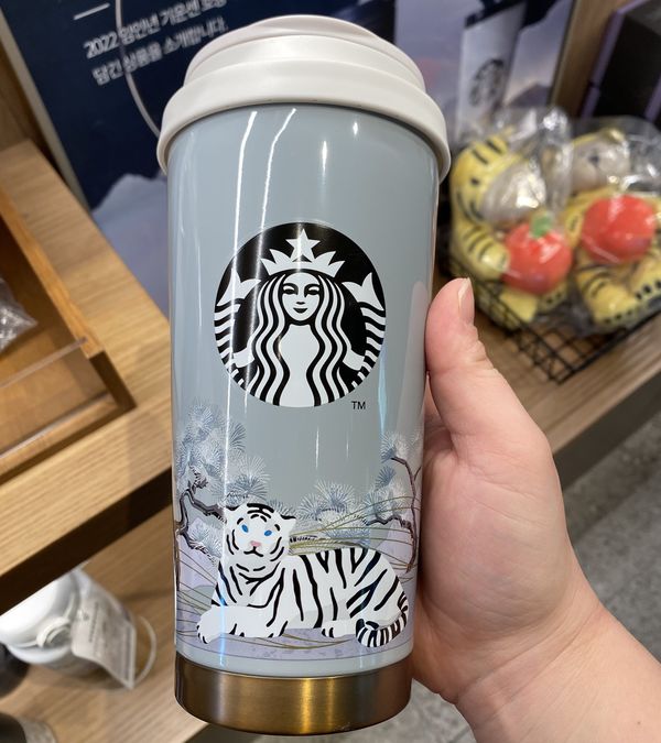 海外スタバの限定タンブラーも見逃せません。こちらは韓国スタバの2022年寅年限定デザインのタンブラーです。ステンレススチール製で保温保冷機能が搭載されているのも嬉しいですね。シックなデザインなので男女問わず使用できそう。