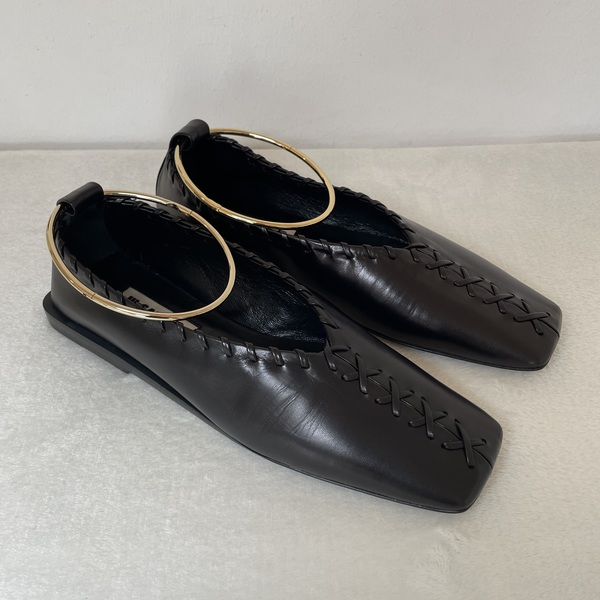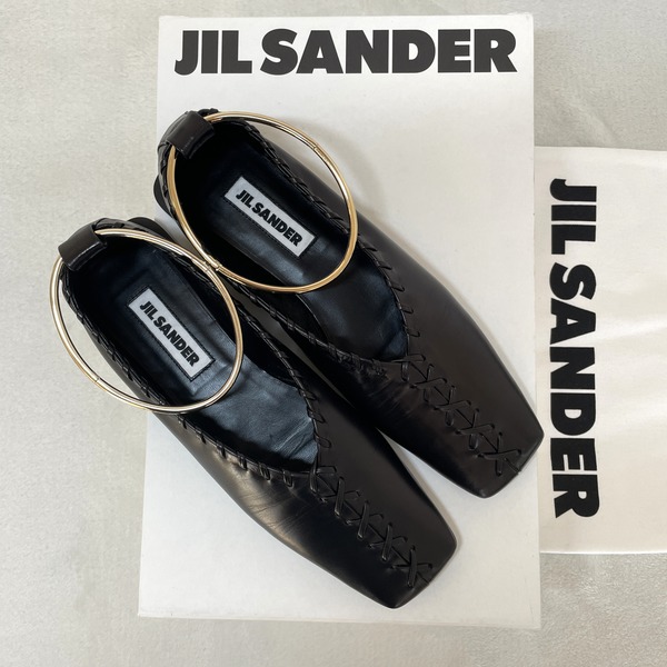 ジルサンダーのシューズを代表するアンクルリングシューズ。発売当初からの根強い人気で、フラットタイプからヒールタイプなど種類も豊富に展開しています。アンクレット部分は自由に取り外しでき、2wayで楽しめるのもうれしいポイント。