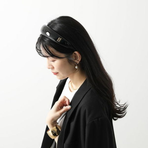 こちらもヘアクリップと同じく「パテントレザー」を使用したカチューシャ。側面に施された控えめなブランドロゴがさり気なく洗練された雰囲気をもたらしてくれます。