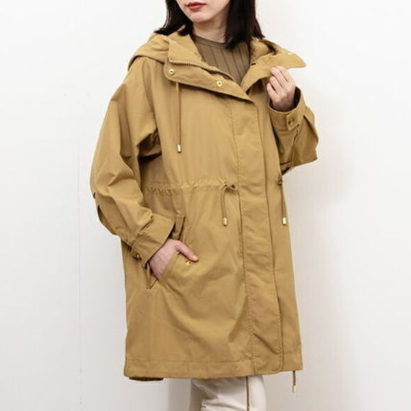 軽量な素材を使用した上品なモッズコート。ウエストと裾にドローコードが付属されており、シルエットを変化させることができます。メタル部分はゴールドカラーで、さりげない女性らしさを演出。