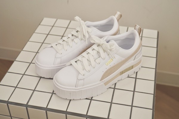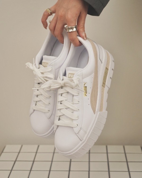 日本でも大人気のPUMA(プーマ)のスニーカー。スポーティさの中に洗練されたデザインが光る、“おしゃれさん”御用達のブランドですね!今回は、MAYZE(メイズ)モデルから人気カラーのホワイト×ベージュのスニーカーとブーツ(ハイカット)タイプをお取り寄せしました!