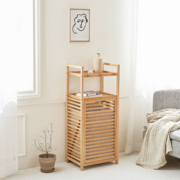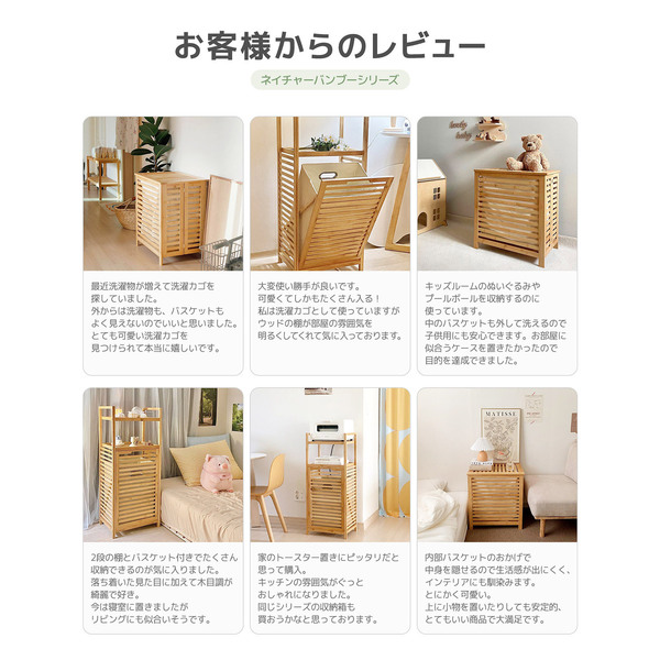バンブー素材のお洒落な雰囲気からは、ラック下に大容量の隠し収納スペースがあるようには見えません。収納できるのに生活感を隠してくれるようなこんなアイテムが欲しかった!