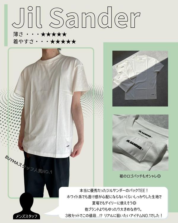 特に注目していただきたいのは、流行のブランドであるJil Sander(ジルサンダー)にもパックTがあるということ。大人でキレイめなコーデに合い、シンプルなモードファッションにもハマるデザインが素敵です!