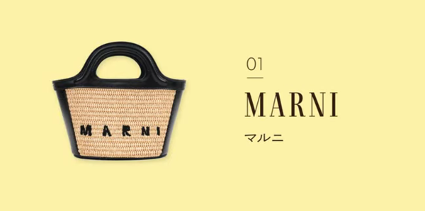 飛ぶ鳥を落とす勢いのMARNI(マルニ)のかごバッグは、人気が衰えないデザイン。かごバッグでは珍しいミニサイズとレザー使いがモダンです。