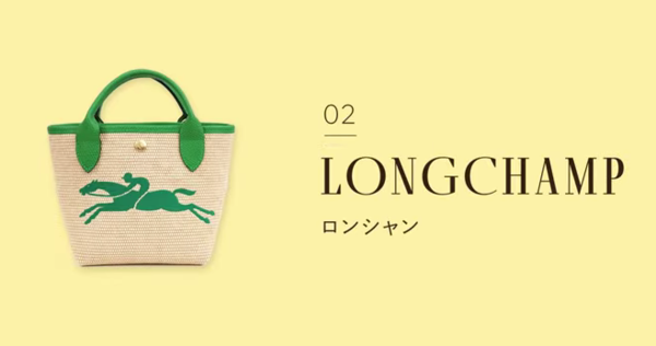 コンパクトでカラフルなLongchamp(ロンシャン)のかごバッグ。アイコニックな颯爽と駆ける馬と騎手のビッグロゴが印象的なデザインです。
