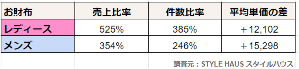 開運日に普段の2倍~4倍近くのお財布(件数)が売れていることがわかりますね。また、男女ともに平均単価が上がっていることから、開運日には少し奮発してハイブランドや高価なお財布を買う傾向にあるようです。