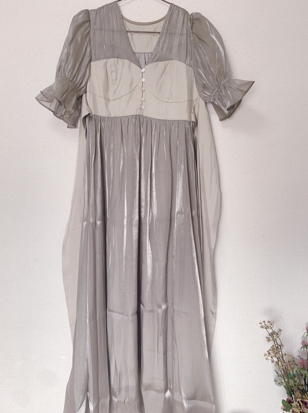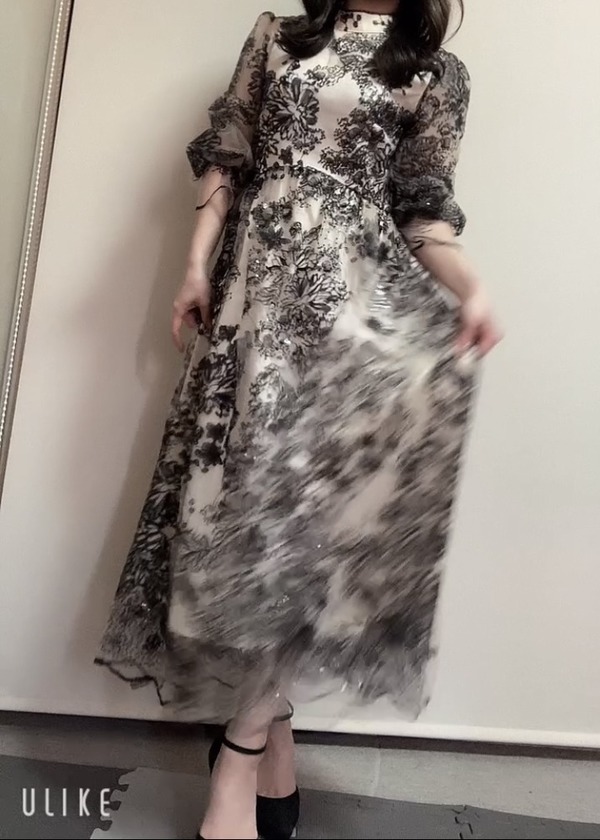 こちらは、チュールに花の刺繍とスパンコールが施されたワンピースタイプ。エレガントな佇まいで、オールシーズンで使えるデザイン。透け防止もしっかりした、ワンピースです◎