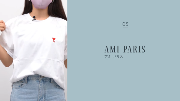 アイコニックなロゴがさりげないTシャツは、AMI PARIS(アミパリス)のもの。使いやすさと着心地の良さを追求したウェアは、日々の着こなしに寄り添ってくれます。