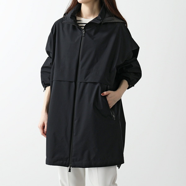 撥水加工を施したAラインが美しいセミロングコート「Techno Taffeta hooded parker」。ゴールドの金具遣いやシルエット、さらっとした光沢のある生地感が女性らしい上品な印象に仕上げてくれます。